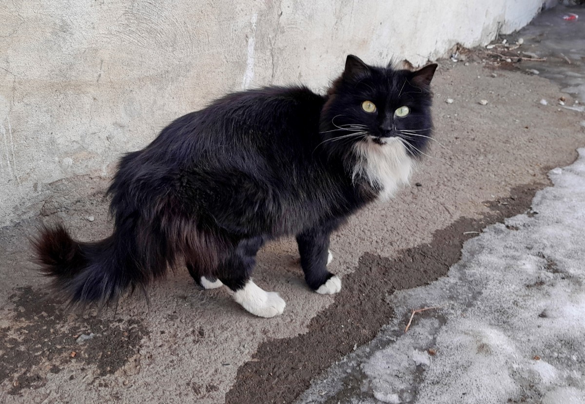 Эта невероятно красивая чёрно-белая кошка обитает на улице. Она в постоянной опасности - пока одни соседи её подкармливают, другие грозятся отравить.