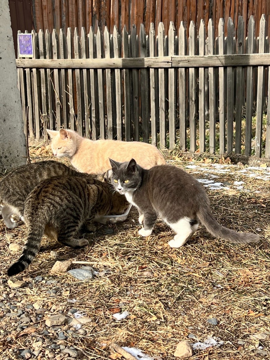 А на Высокогорье под крыльцом базы живут их собратья по несчастью - два котёнка-подростка.
