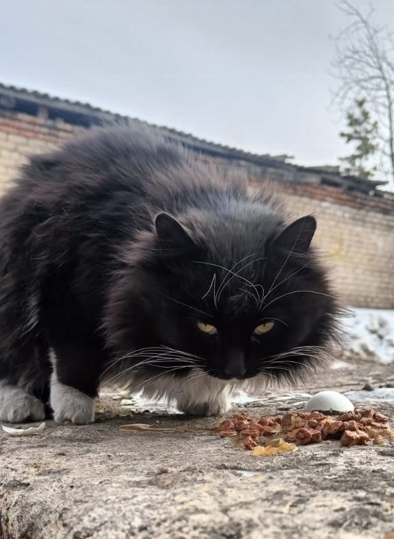 Эта черно-белая кошечка выживает под крыльцом. И пока не имеет даже имени, не говоря уже о тёплом месте и полной миске. Даже пушистая шубка не спасает её от мороза.
